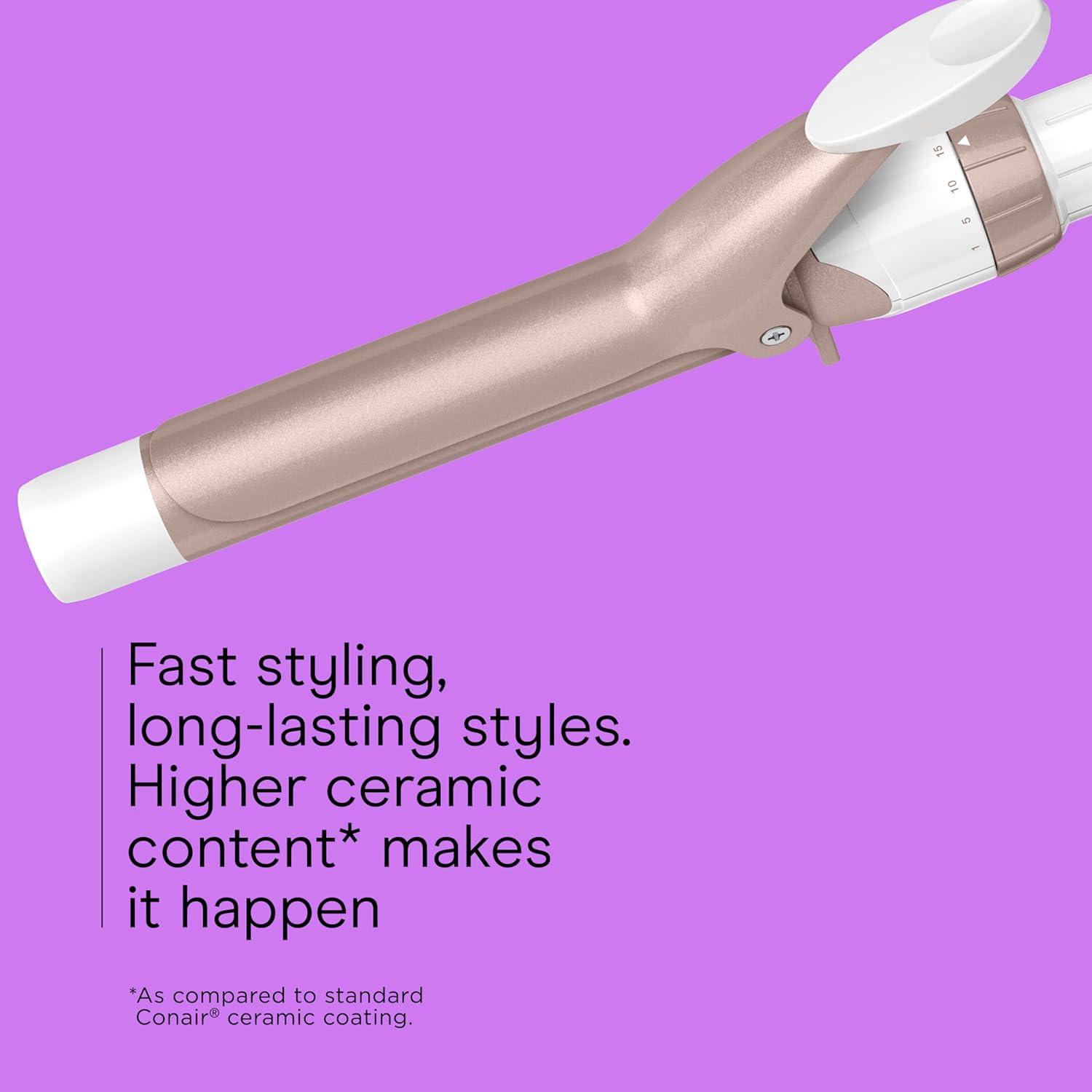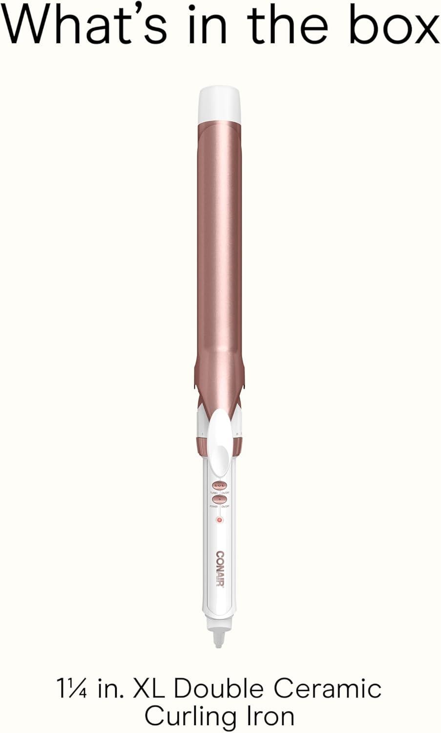 Conair Double Ceramic 1 ¼-Inch Curling Iron with Claw Clip, 1.25-Inch Barrel Creates Loose Curls, Hair Curler for Use on Medium and Long Hair, White(White/Rose Gold)