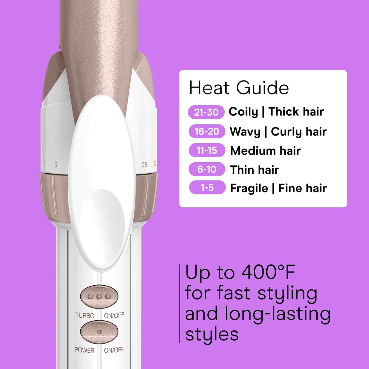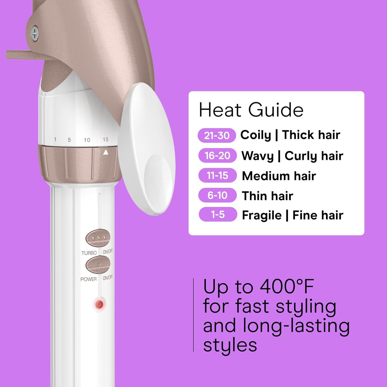 STYLE YOUR WAY: Dial up the heat to match your style. With 30 heat settings, a Turbo Heat boost, and 2X Ceramic Technology for less damage*, this curling iron gives you the control to create loose curls on medium and long hair.