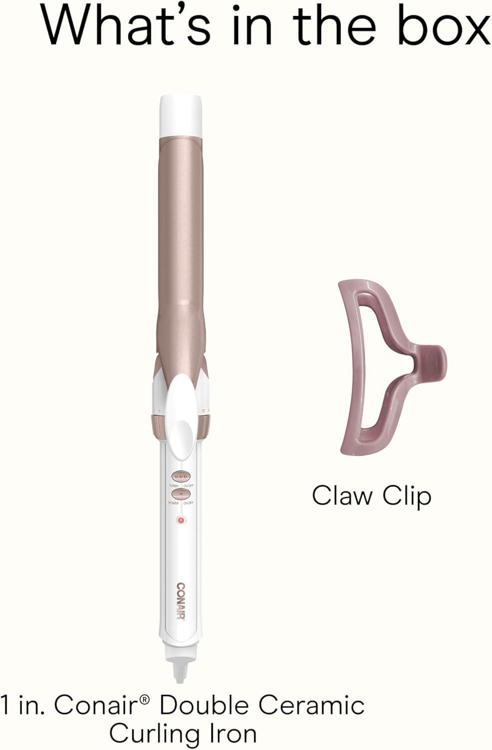 CURLS THAT LAST: Say hello to bouncy, frizz-free curls that hold their shape all day with the Conair Double Ceramic 1 ¼-Inch Curling Iron with Claw Clip, crafted for even heat and long-lasting style.