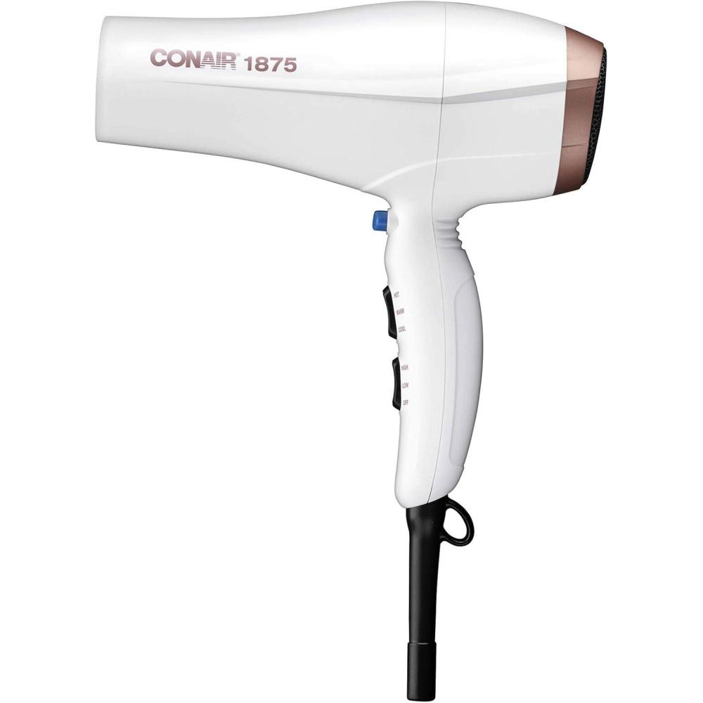 Conair Double Ceramic Hair Dryer, 1875W Blow Dryer with Diffuser and Concentrator, Ionic Conditioning, 3 Heat & 2 Speed Settings, Amazon Exclusive, White(White)