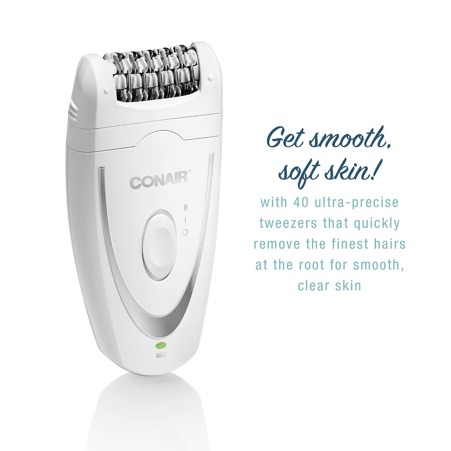 Conair Full Body Epilator & Hair Removal for Women, Cordless/Rechargeable, Perfect for Total Body(Epilator with Sensitive Skin Attachment)