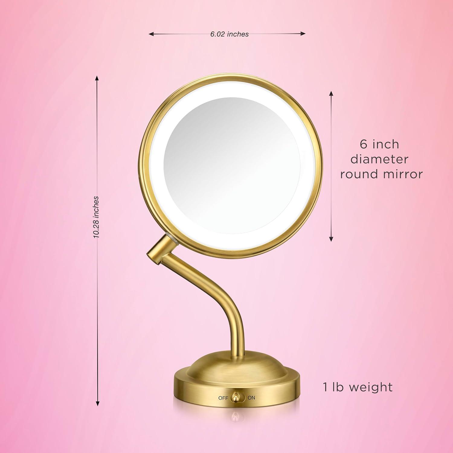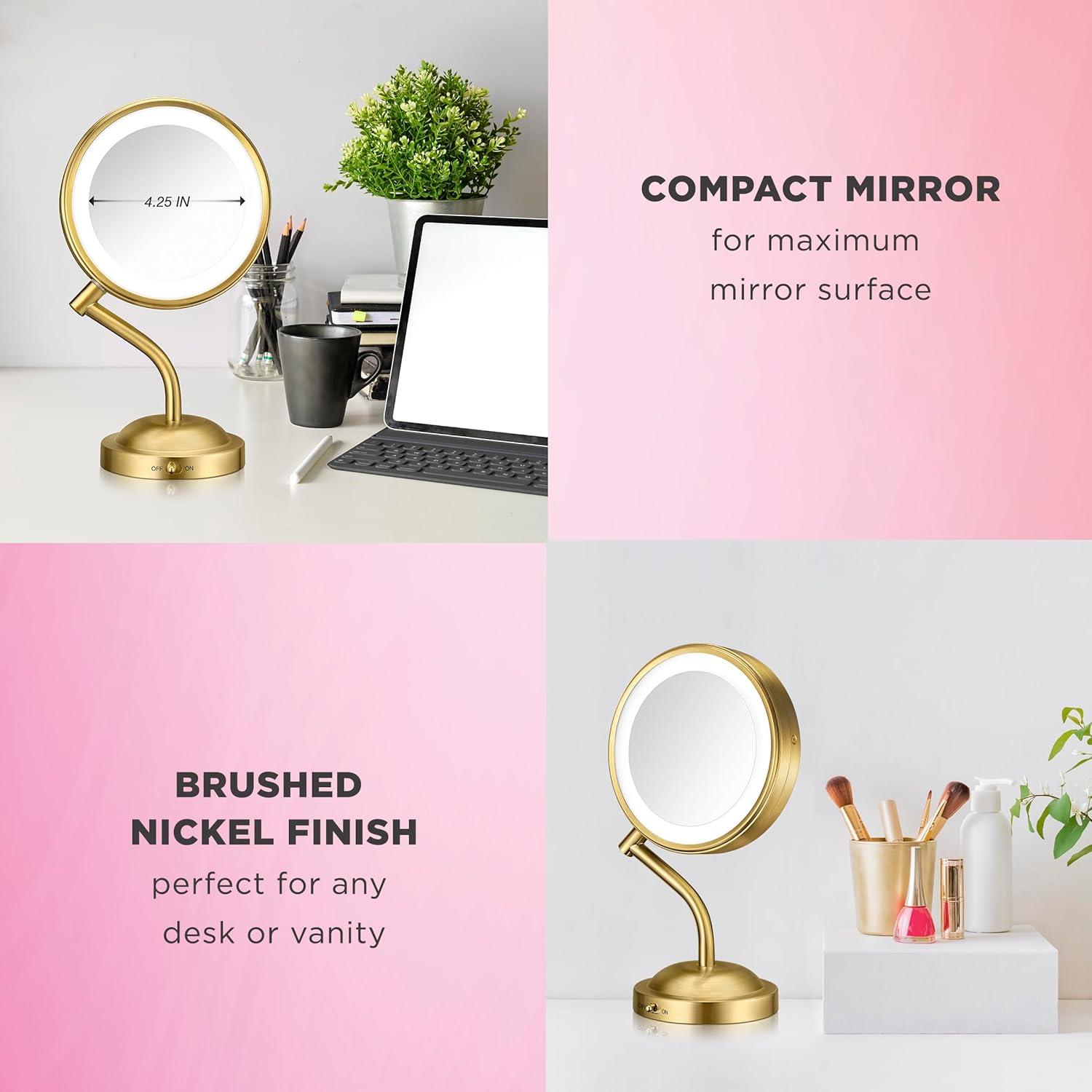 Conair Lighted Makeup Mirror, LED Vanity Mirror, 1X/10X Magnifying Mirror, Double Sided, Battery Operated in Rose Gold(Brushed Brass 1X/5X Magnification)