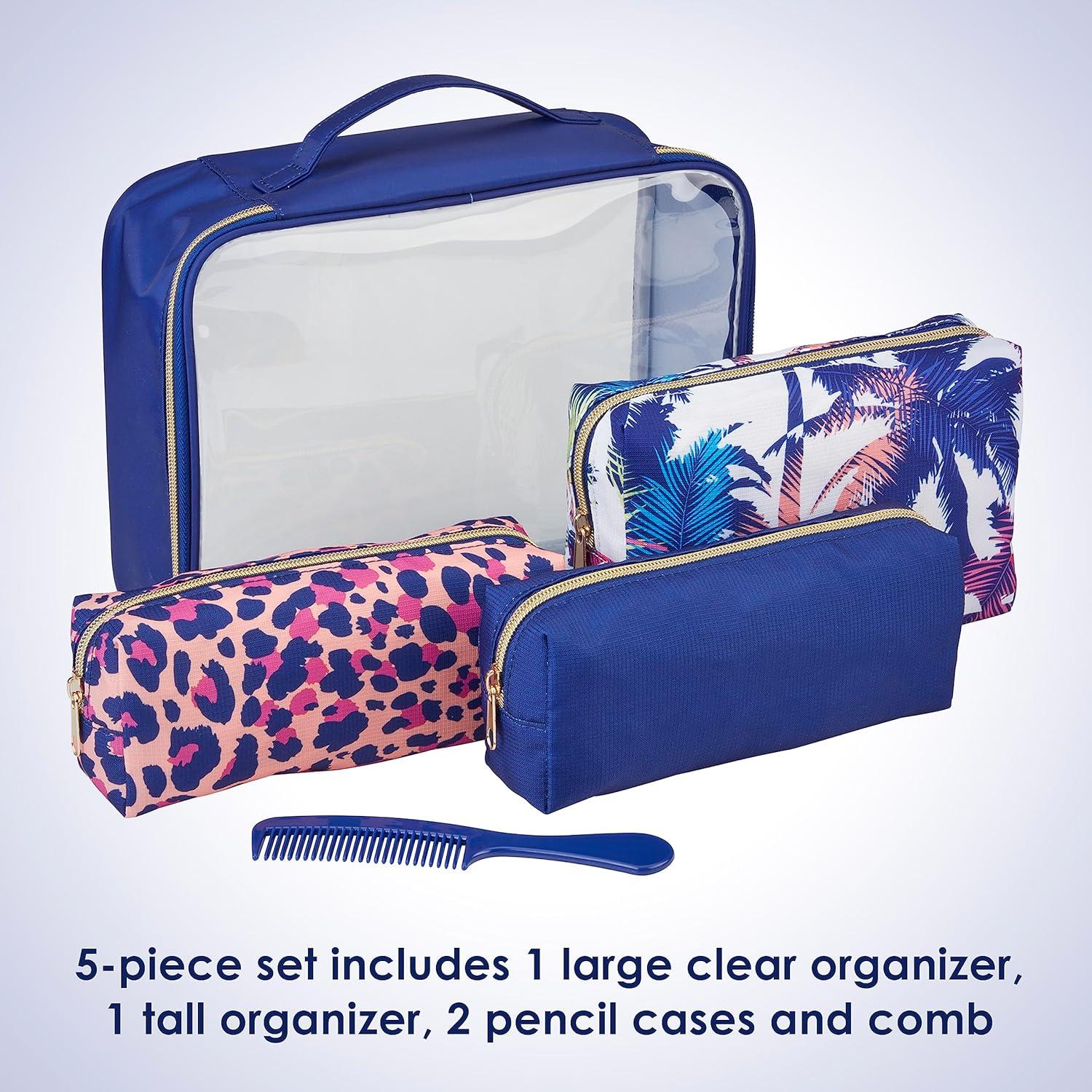 imageConair Makeup Bag  Travel Toiletry Bag  Cosmetic Bag  Toiletry Bag for Women  Double Zip Organizer  Tropical PrintBlue Palm