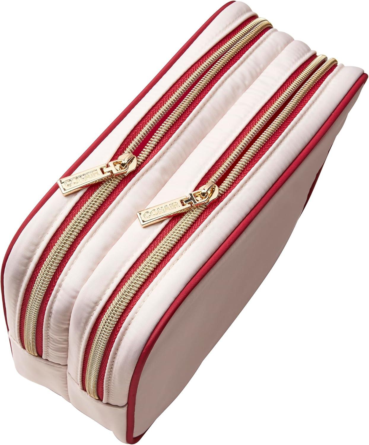 imageConair Makeup Bag  Travel Toiletry Bag  Cosmetic Bag  Toiletry Bag for Women  Double Zip Organizer  Tropical PrintGlinda Pink