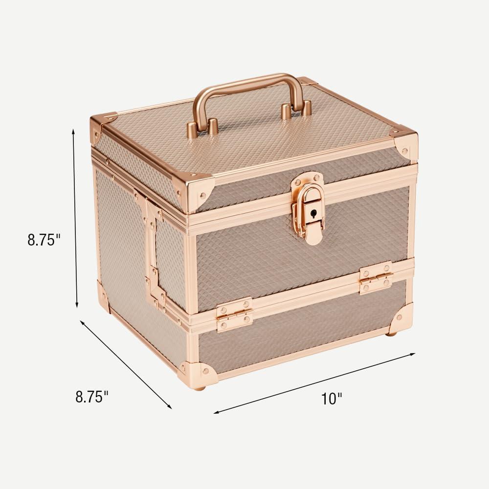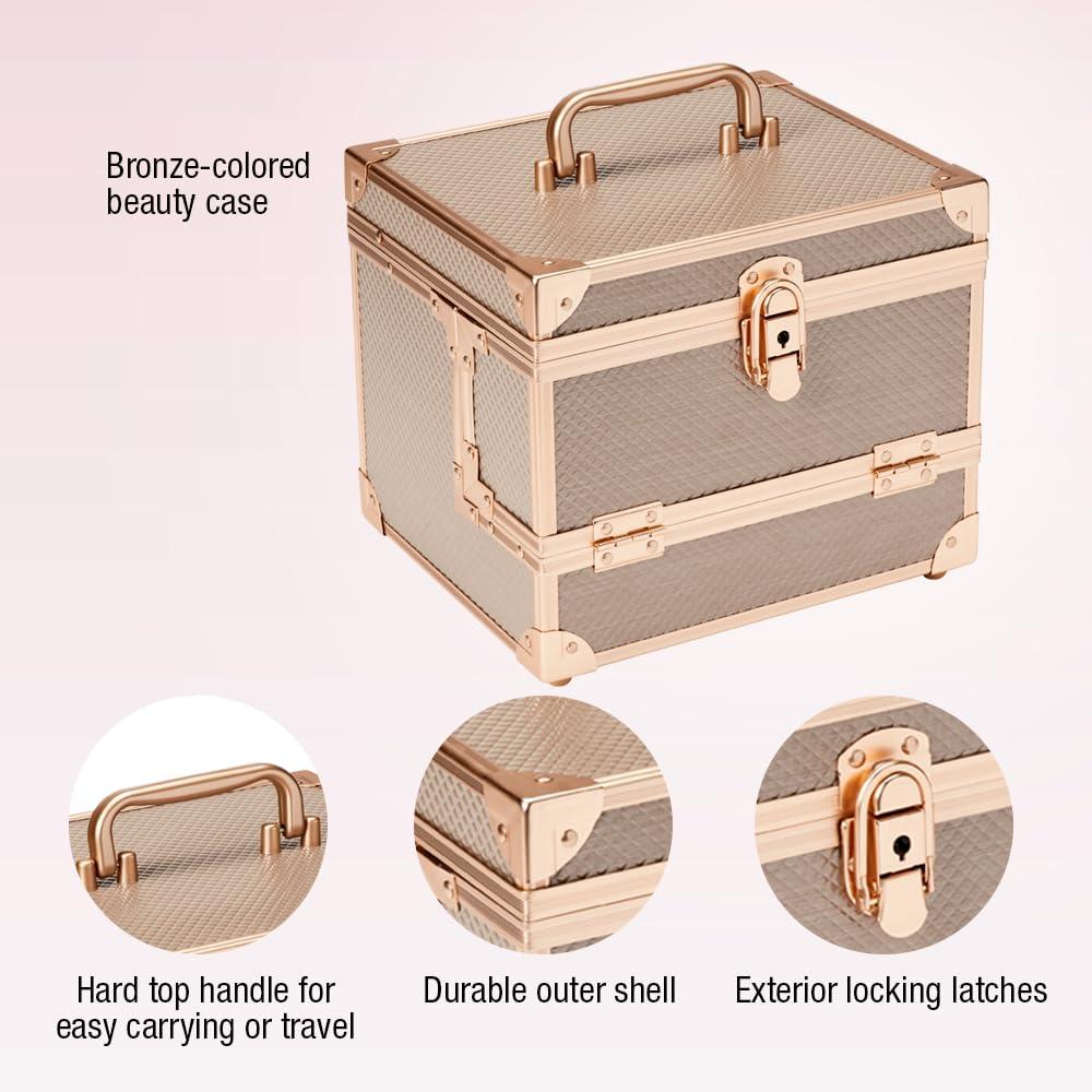 Conair Makeup Beauty Case - Cosmetic Case with Expandable Shelves and Locking Latch - Professional makeup case - Silver Diamond - London SOHO New York by Conair(Bronze)