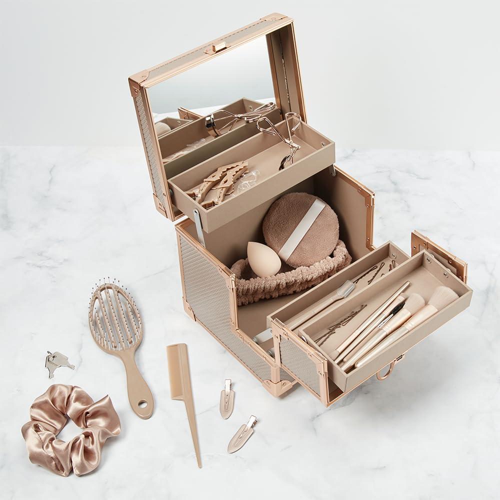 STAY ORGANIZED ON THE GO – Tote your collection of must-have styling tools and cosmetics in the rose gold train case that keeps everything neatly in place, so you can stay super organized while creating beautiful looks.
