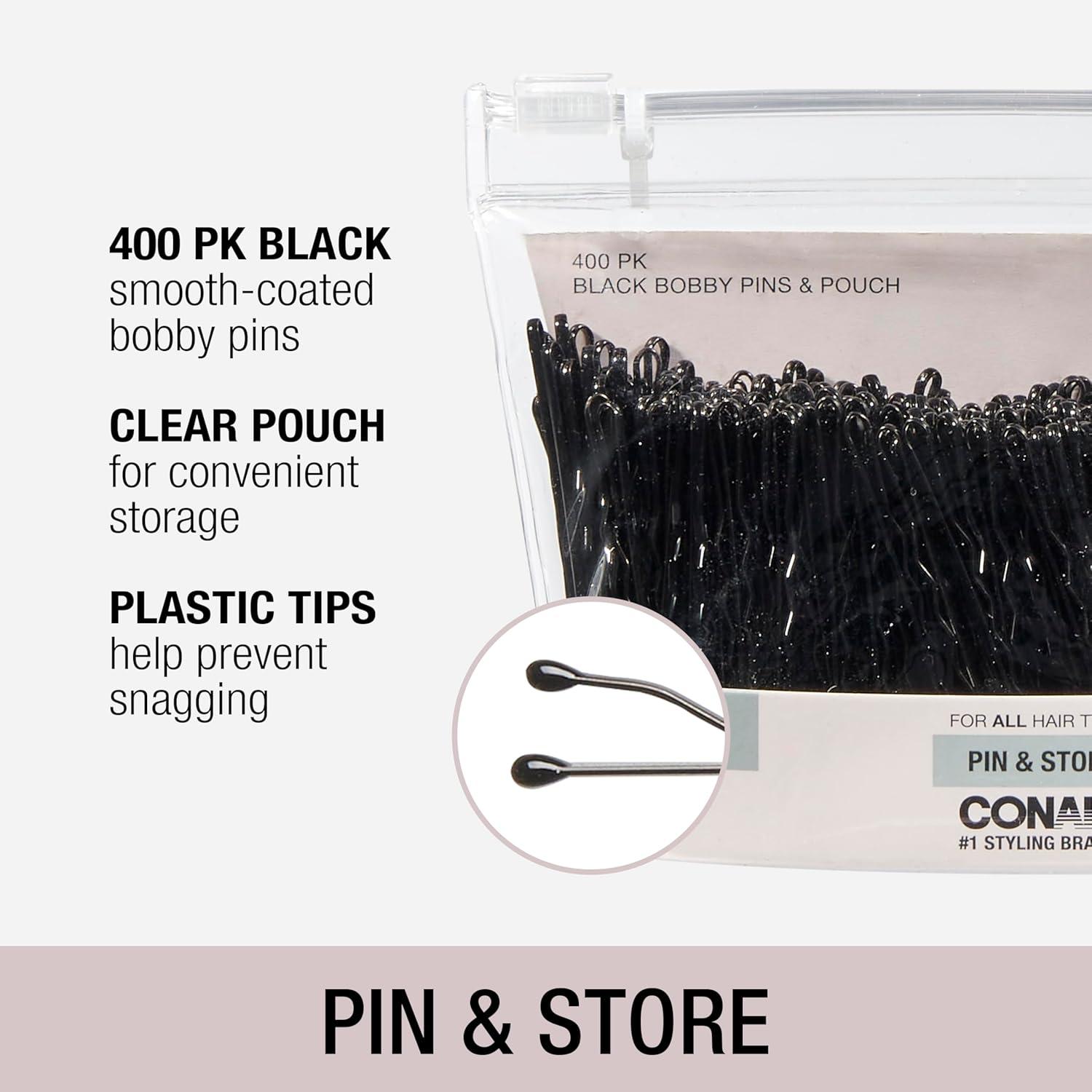 Conair – bobbypin case – Black, Conair has everything you need for beautiful hair. Smooth-coated, sturdy, ball-tipped steel bobby pins are packed in a clear plastic container for easy storage.
