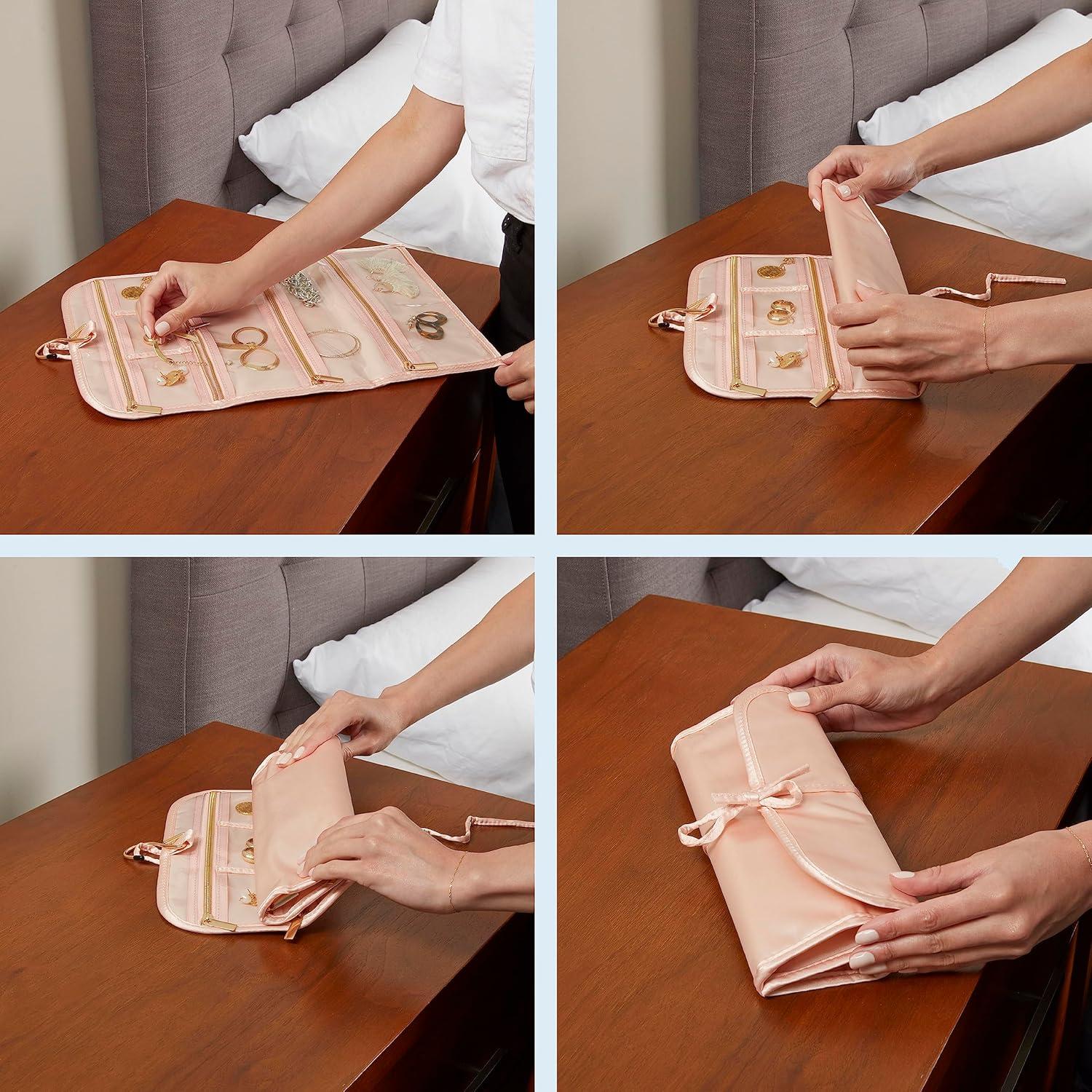 Roll Bag with Six Zippered Pockets: Travel bag is 12.2″ X 1″ X 5.5″, with three large zippered pockets for necklaces and bracelets, and three small zippered pockets for rings and earrings, making it the perfect travel storage for your jewelry