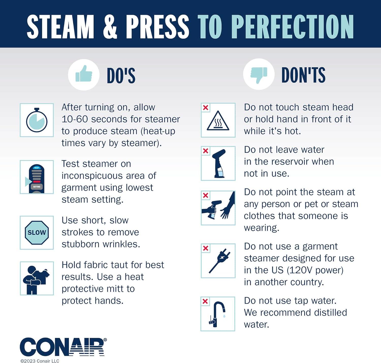 Travel Like A Pro: This Conair Travel Smart Handheld Steamer provides 10 minutes of steam time in a compact design to help you keep your clothes fresh and clean wherever you go; fabric steamer fits conveniently in your luggage, making it ideal for air travel