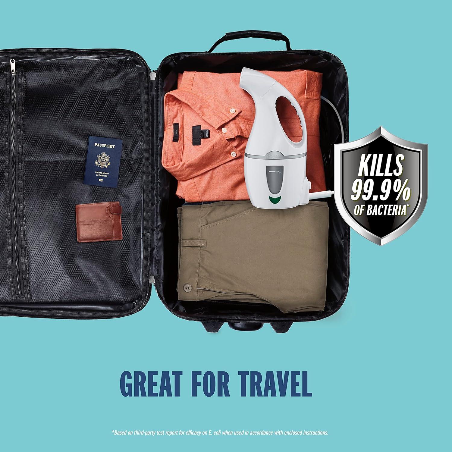 Portable Steamer for Worldwide Use: Dual-voltage travel steamer works everywhere your travels take you and easily sanitizes fabric, killing 99.9% of germs, bacteria, bed bugs and dust mites (based on third-party test report for efficacy on E. coli when used in accordance with enclosed instructions)