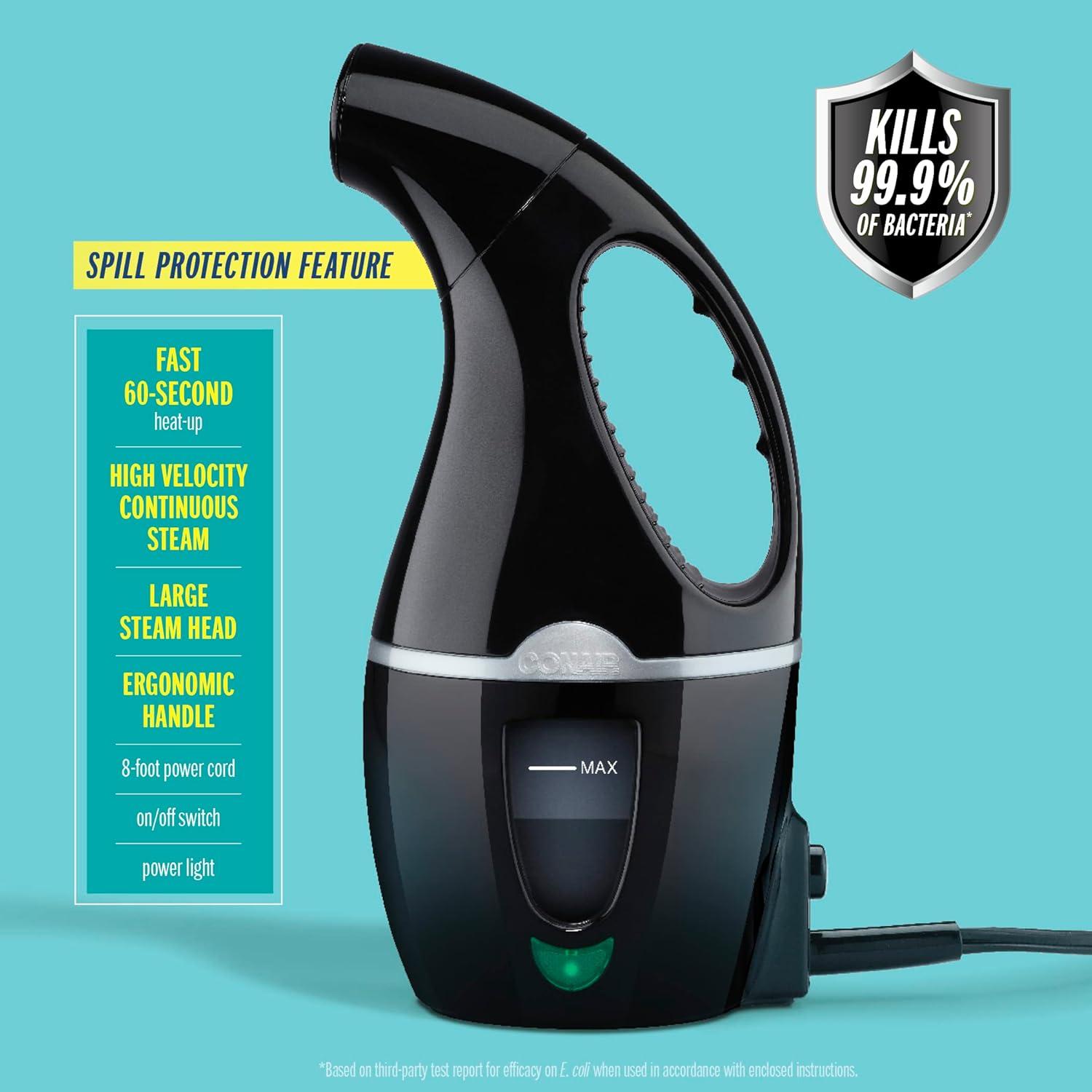 Conair Travel Steamer for Clothes - Mini Garment Steamer, Fabric Steamer in Green by Travel Smart - Packable in Carry On Luggage - Dual Voltage(Black)
