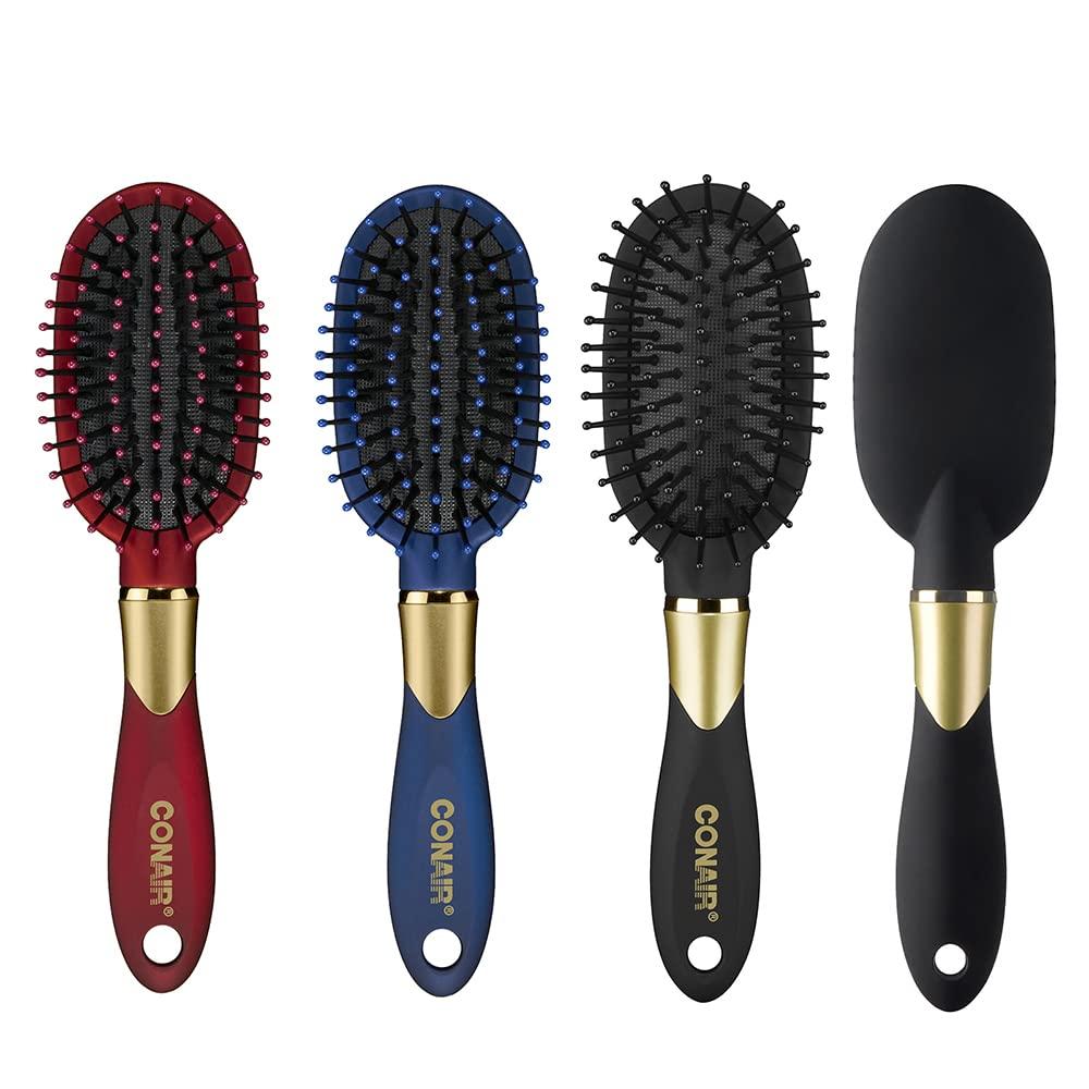 imageConair Velvet Touch oval cushion hair brush  Travel Hairbrush Detangling  curly or straight styles  detangler brushes  women or men  Blush PinkAssorted Red  Black  Navy
