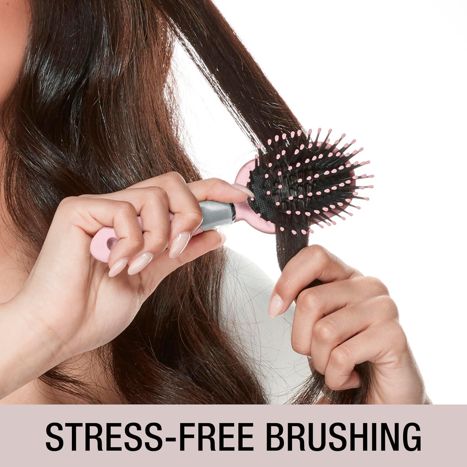 Conair Velvet Touch oval cushion hair brush - Travel Hairbrush- Detangling - curly or straight styles - detangler brushes - women or men - Blush Pink(Pink)