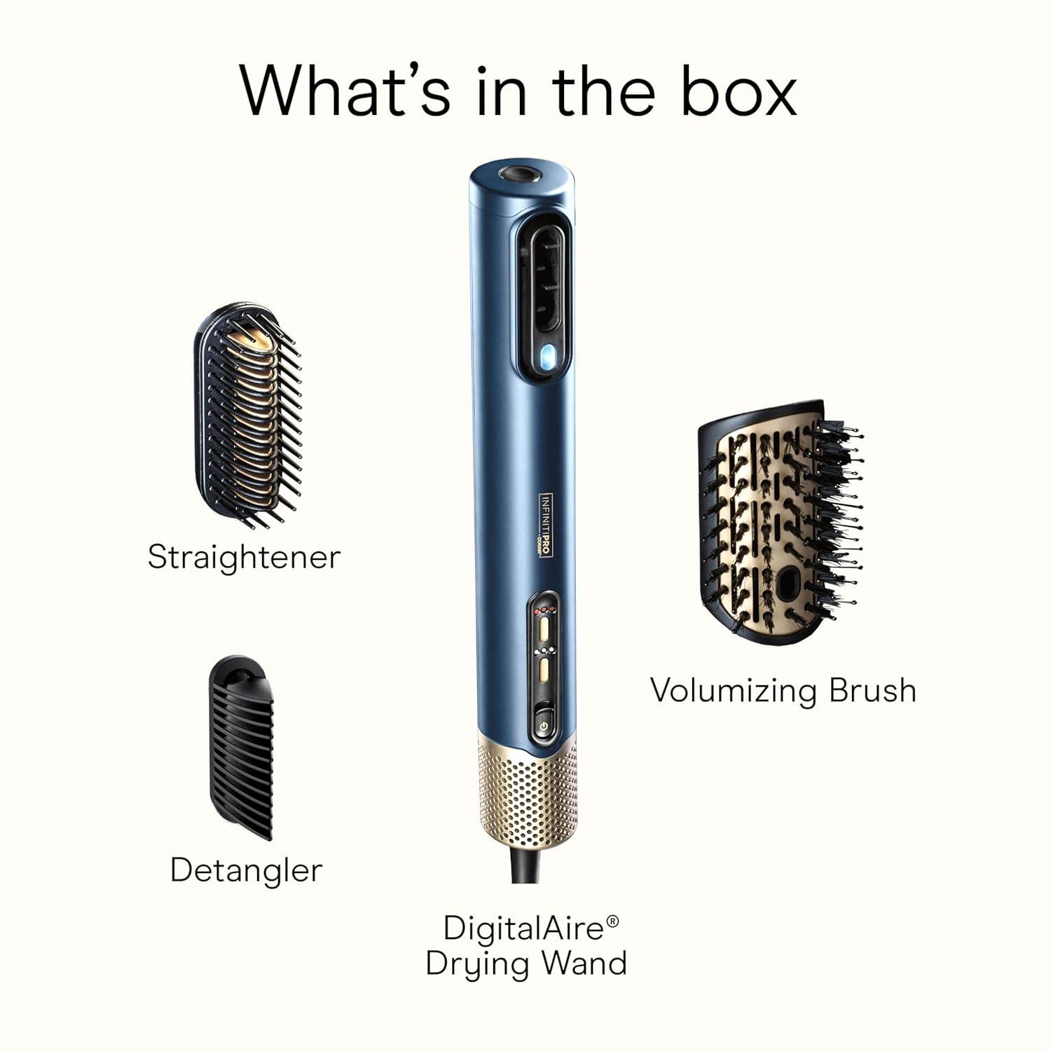 Smooth, detangle, and volumize your hair as you dry with the INFINITI PRO by CONAIR® DigitalAIRE® Hair Dryer Drying Wand. Optimized airflow delivers fast, efficient drying, so you can spend less time getting ready. Choose from three airflow levels and four temperature settings with this digital hair dryer with comb for a variety of wet-to-dry styling options for all hair types. With a maximum heat of 255°F, you get salon-quality results at home without damage from extreme heat*. (*Extreme heat damage occurs with temperatures above 300°F. This unit has a maximum temperature of 255°F. Damage could vary based on hair condition.) Thanks to Advanced Plasma Technology, say goodbye to frizz and hello to smooth, shiny hair. This blow dryer has four versatile attachments: a smoothing Comb, a volumizing Curved Oval Brush, a gentle Pick for detangling, and a hair Diffuser for bouncy, defined curls. At Conair®, we empower you along your hair journey with the latest hair tools and accessories that inspire the joy of change.
