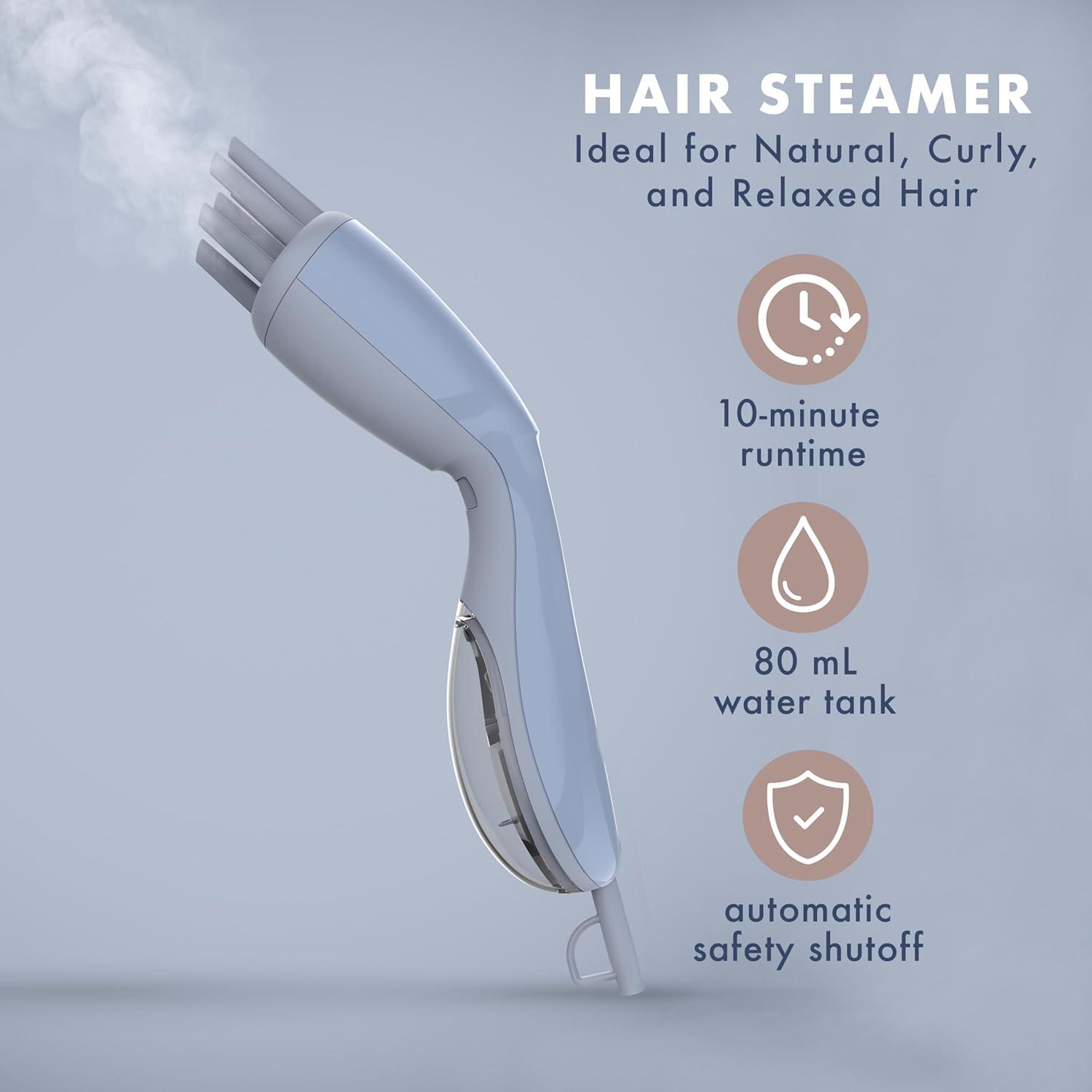 QUICK & EFFICIENT HAIR CARE: A quick 10-minute runtime and 30-second heat up ensure fast, effective hair treatments with every use. An 80 mL water tank detaches for quick and mess-free refills with continuous steam. Includes an automatic safety shutoff.