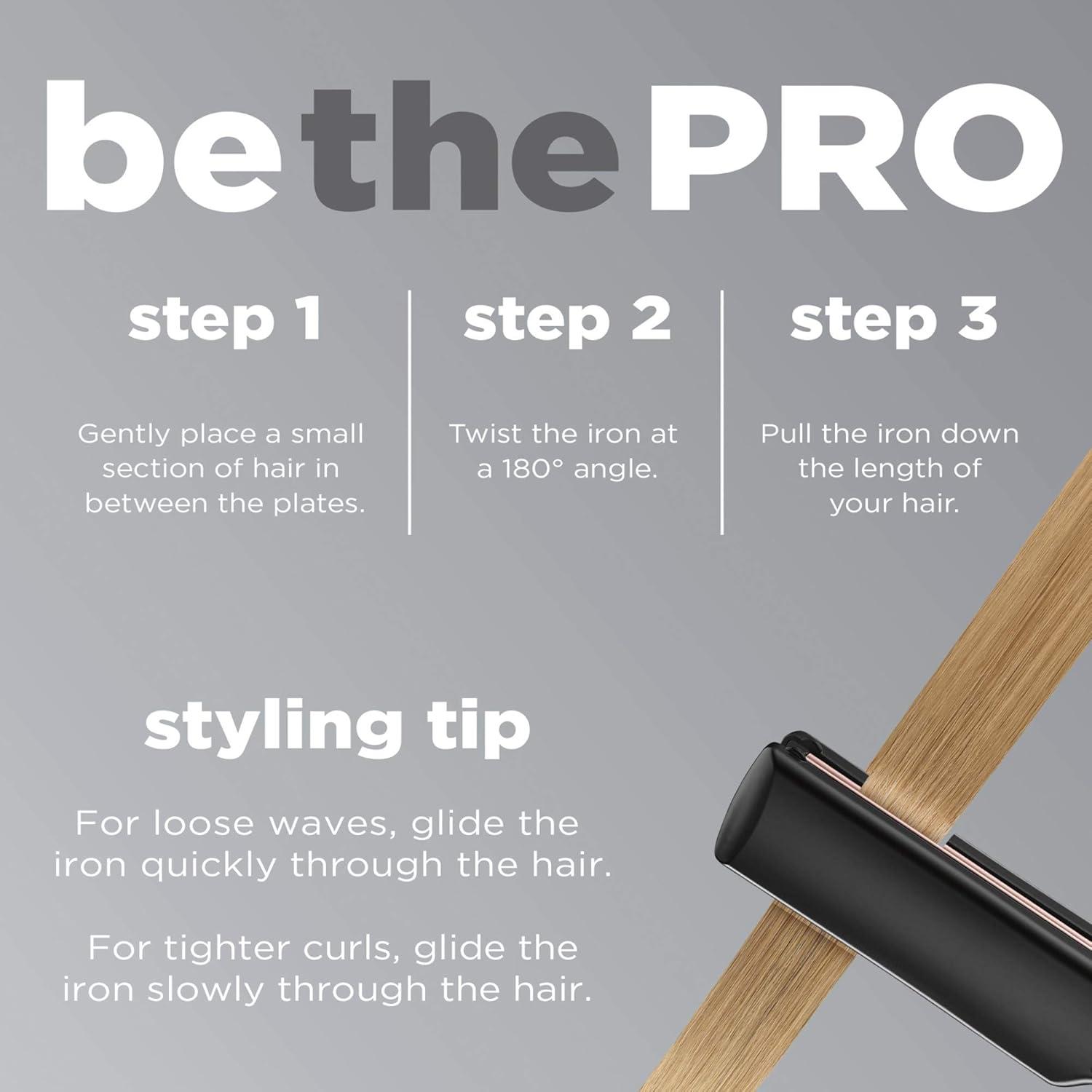 ROSE GOLD CERAMIC FLAT IRON: Get sleek, glossy results with 30 settings, extra-long plates (compared to typical straightener plate length), and advanced ceramic tech that heats evenly up to 455°F for any hair type.