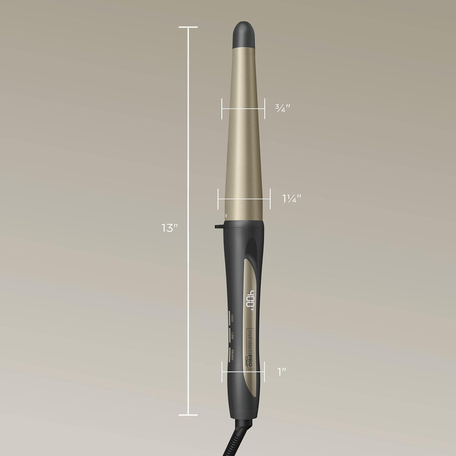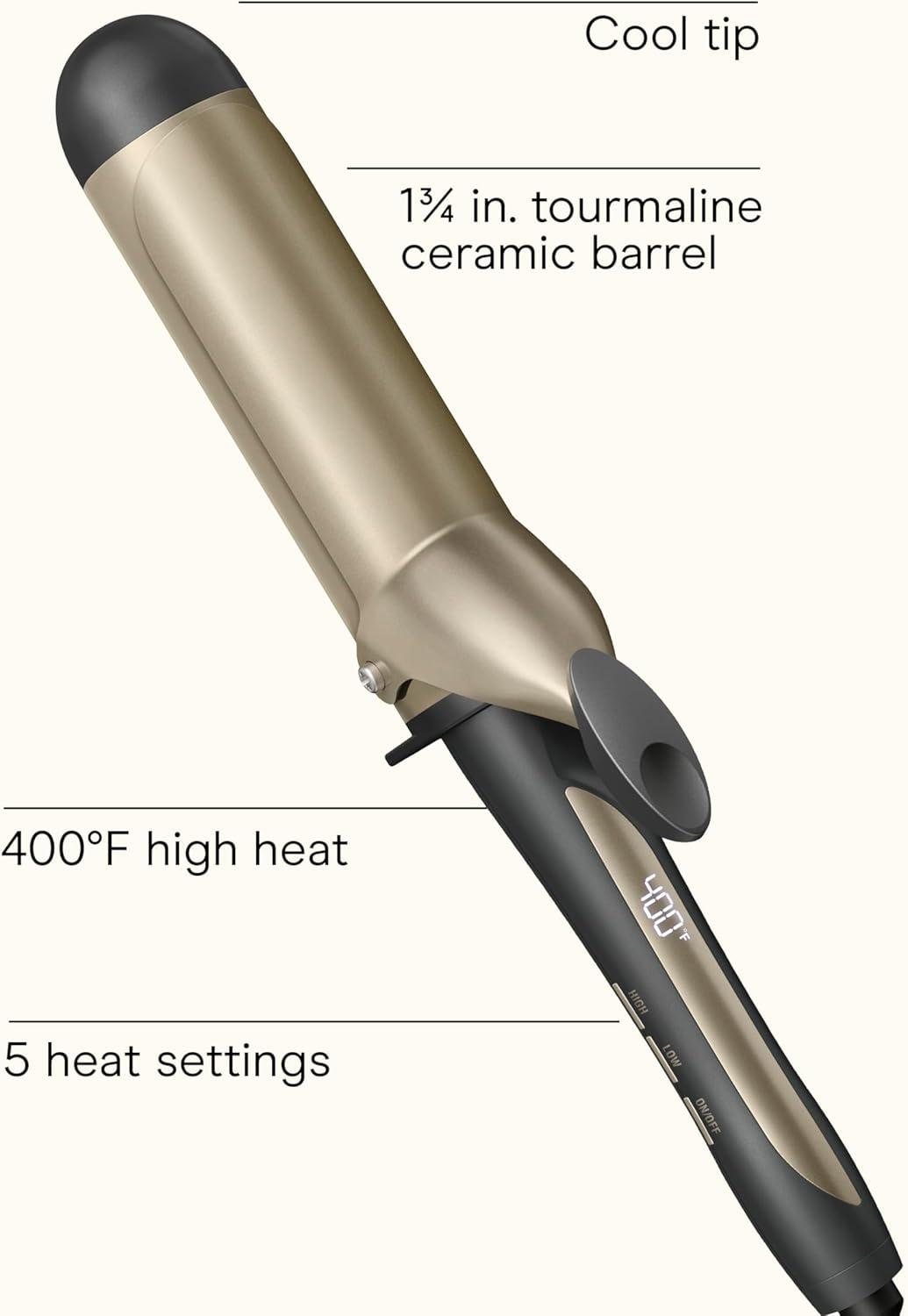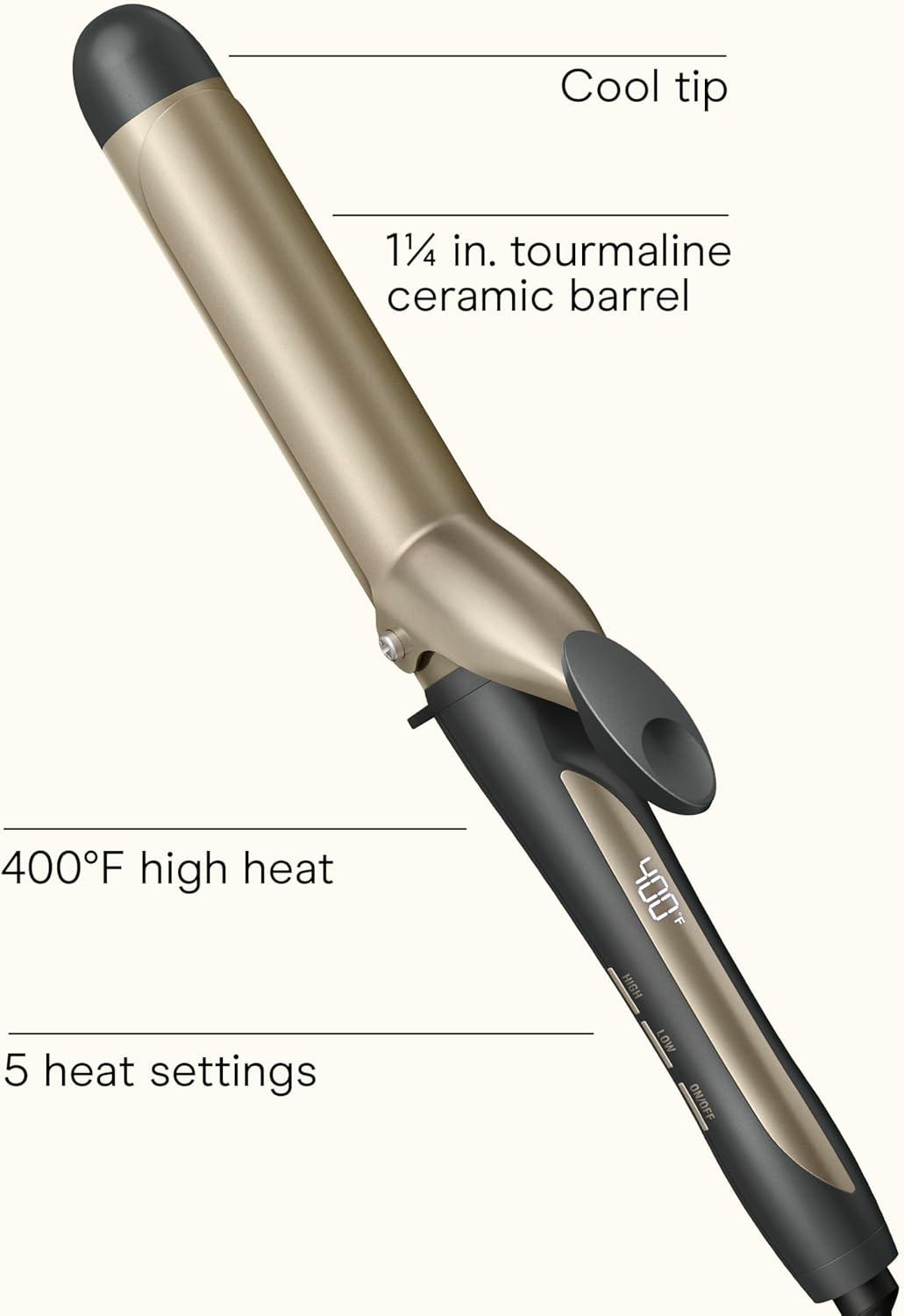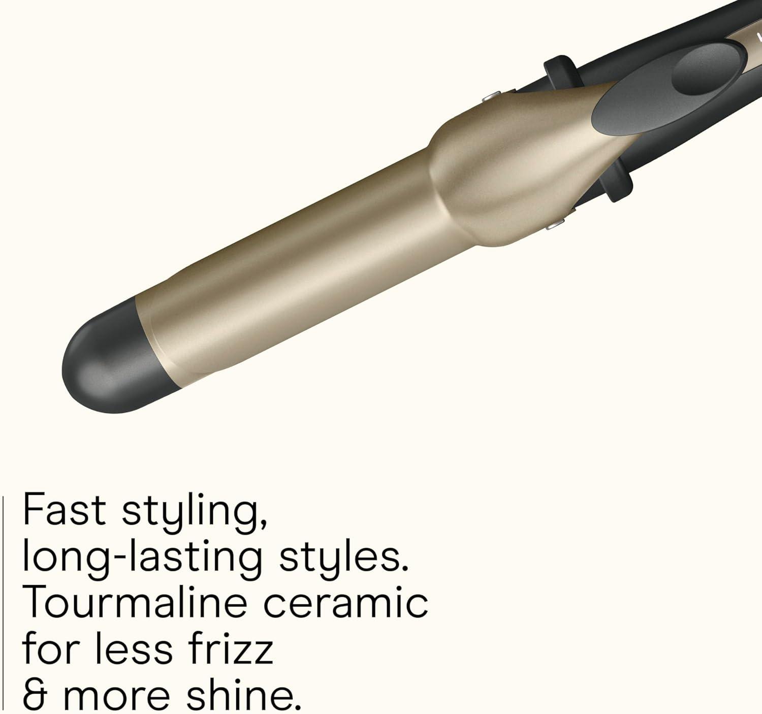 Shiny, frizz-free curls meant to impress! With frizz-fighting ions, customizable temperature settings, and even heat for less damage, the INFINITI PRO CONAIR Tourmaline Ceramic 1¼-Inch Curling Iron lets you create the luxurious loose curls you love. Designed to maximize curl definition and volume, this hair curler styling essential features a tourmaline ceramic-coated barrel to reduce frizz and give you smooth, shiny results. The true ceramic heater of this barrel curling iron heats up in 30 seconds and generates consistent heat as soon as it reaches a stabilized temperature for no damaging hot spots and a flawless finish The temperature select buttons and digital LED display make it easy to customize heat for your hair type. Choose from 5 heat settings up to 400°F. With such a wide range of heat options, there's a setting on this INFINITI PRO CONAIR Curling Iron for every hair type and texture.
