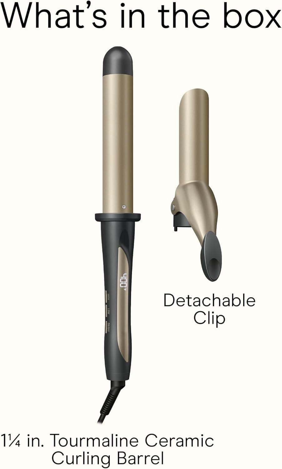 INFINITI PRO CONAIR Tourmaline Ceramic 1¼ Inch Curling Iron, 1¼-Inch Barrel Digital Hair Curler, Produces Loose Curls, 5 Heat Settings, For Use on Medium and Long Hair, Dark Grey(Dark Grey)