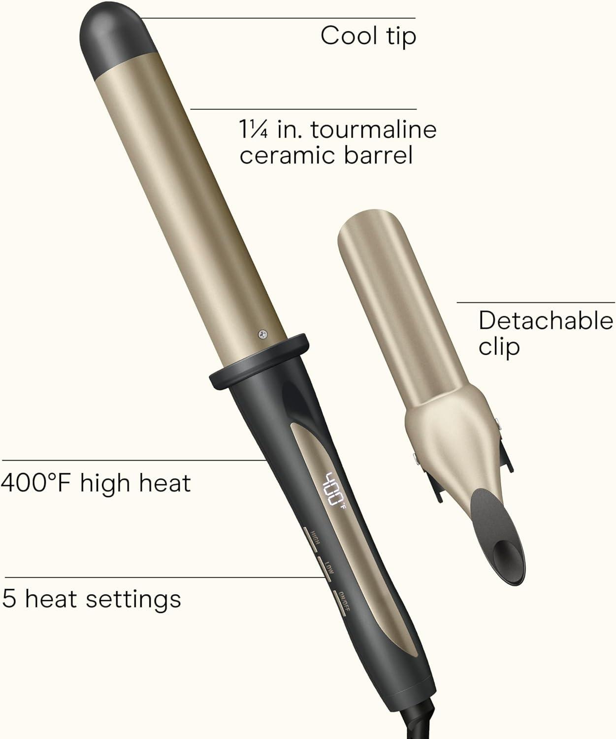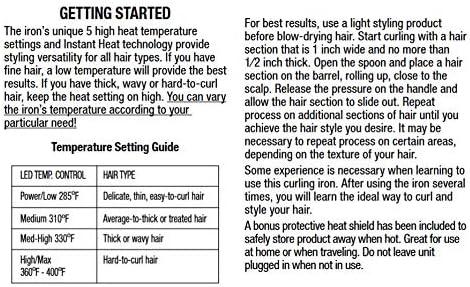 TURN UP THE HEAT: This hair curling iron has a true ceramic heater that heats up in 30 seconds, providing consistent heat once it reaches a stabilized temperature. With 5 heat settings and 400°F high heat, choose the right setting for your hair.
