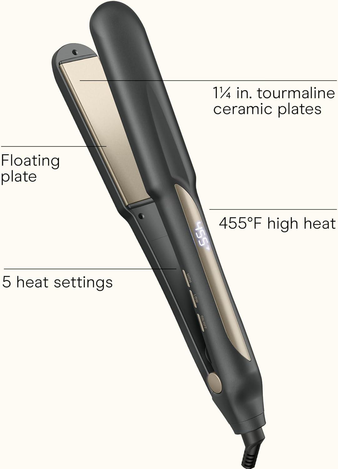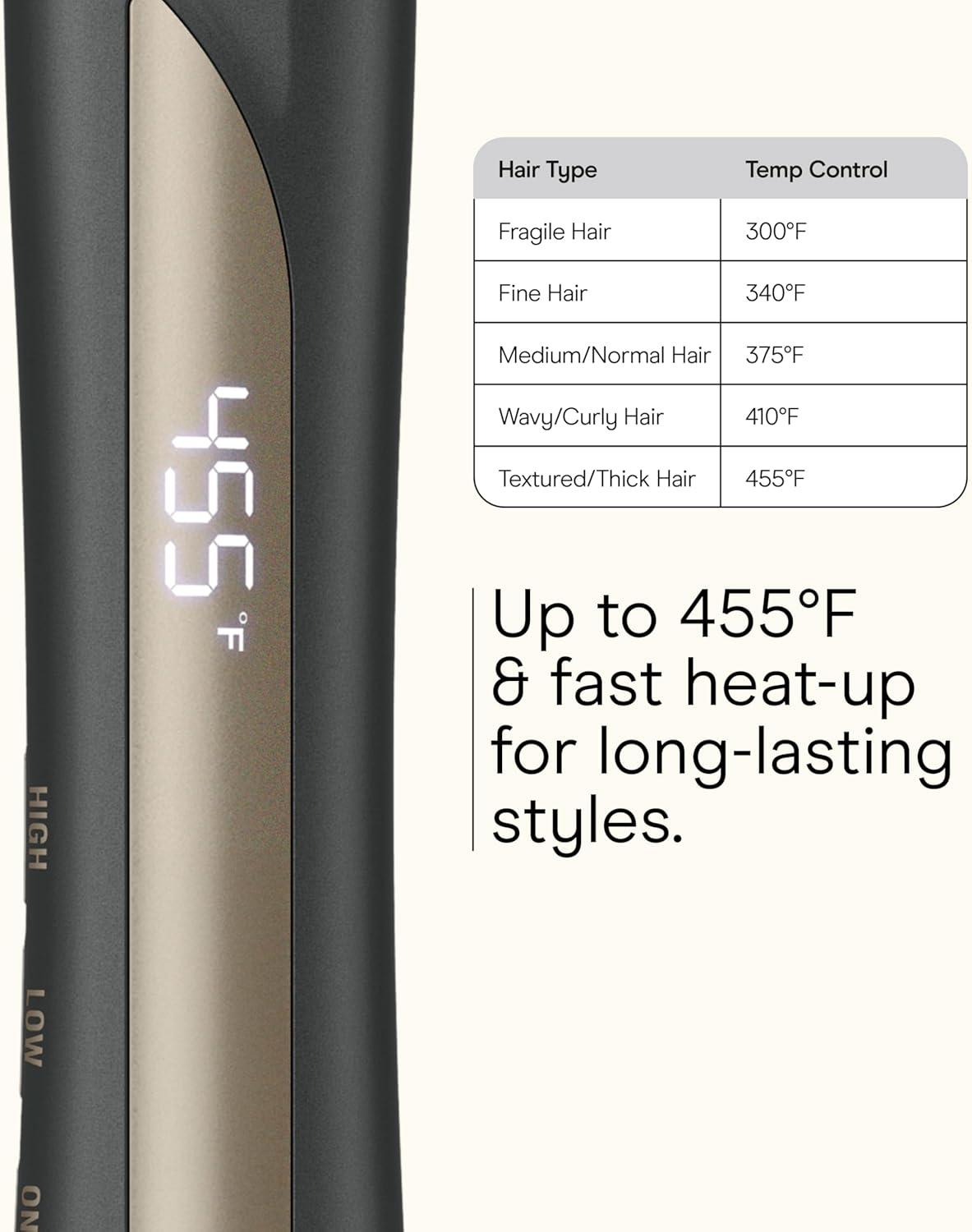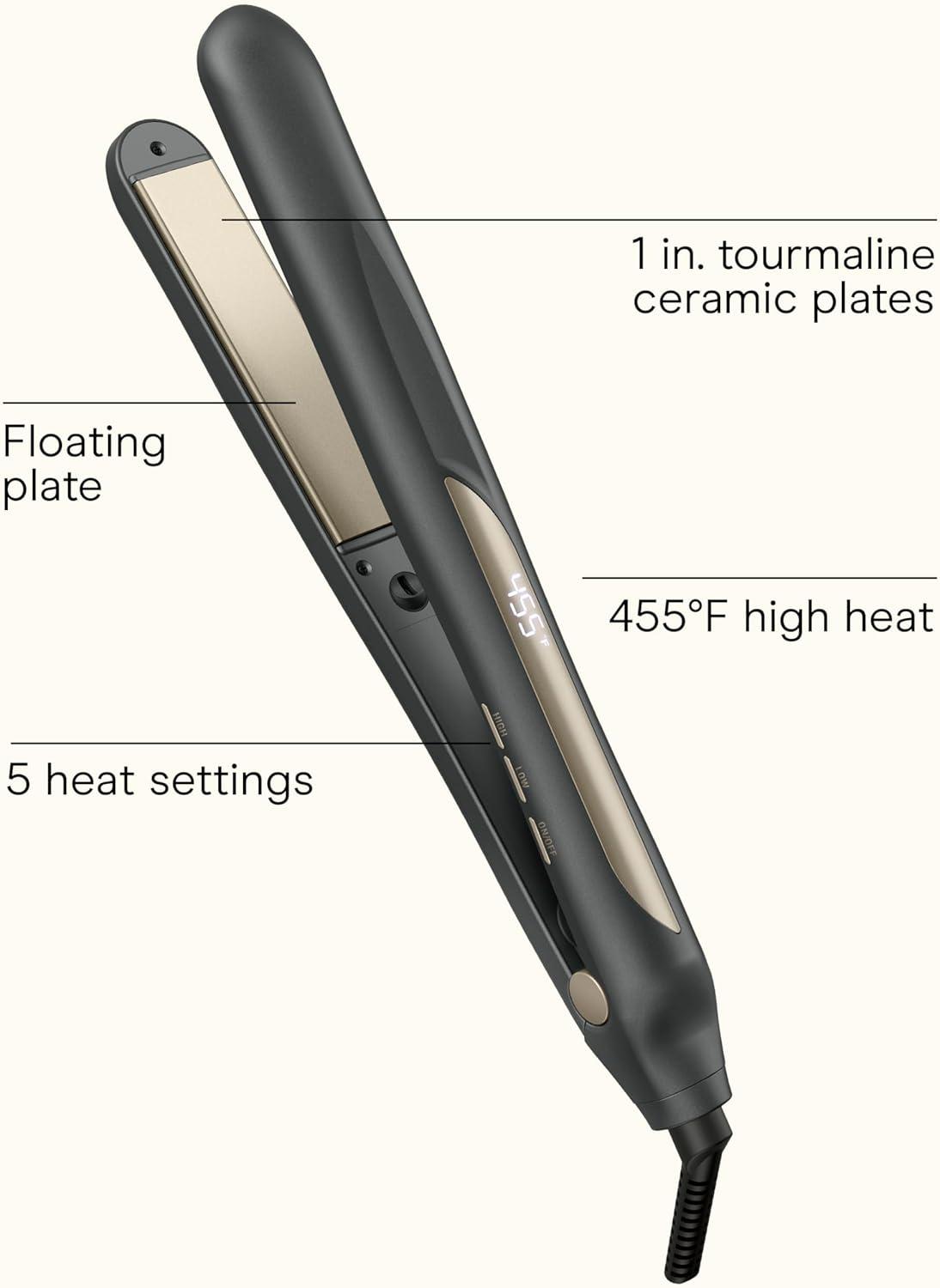 TURN UP THE HEAT: This flat iron has a true ceramic heater that heats up in 30 seconds and maintains the heat level once it reaches a stabilized temperature. With 5 heat settings and 455°F high heat, choose the right setting for your hair.