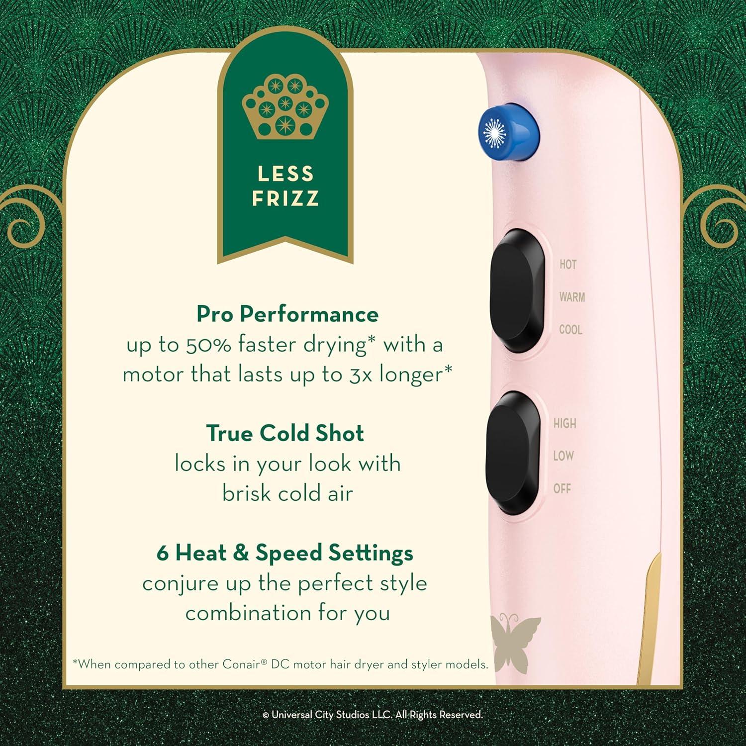 Get shiny, frizz-free hair in no time with the INFINITIPRO BY CONAIR Quick Style & Shine Hair Dryer, featuring advanced ceramic and tourmaline technology. This powerful 1875W blow-dryer delivers fast drying while enhancing shine and reducing frizz. The high-torque DC motor ensures efficient, quick drying, making it the perfect hair dryer for women on busy mornings. The ionic conditioning technology fights frizz and gives you smooth, healthy-looking hair. Designed for all hair types, this hair dryer includes three heat settings and two speed options. Whether you're styling for sleek blowouts or curly hair, the included hair diffuser and concentrator provide the tools for effortless styling. The cool shot function locks your style in place, so you can enjoy long-lasting results. The INFINITIPRO BY CONAIR hair dryer is a versatile option that is perfect for all hair types. The diffuser helps define curls and reduce frizz, and the concentrator helps create sleek, smooth looks. With its lightweight, ergonomic design, the Quick Style & Shine Blow-Dryer is the perfect choice for when you're looking to achieve salon-quality results at home. The INFINITIPRO BY CONAIR hair dryer is an excellent choice for smooth, frizz-free hair every day.