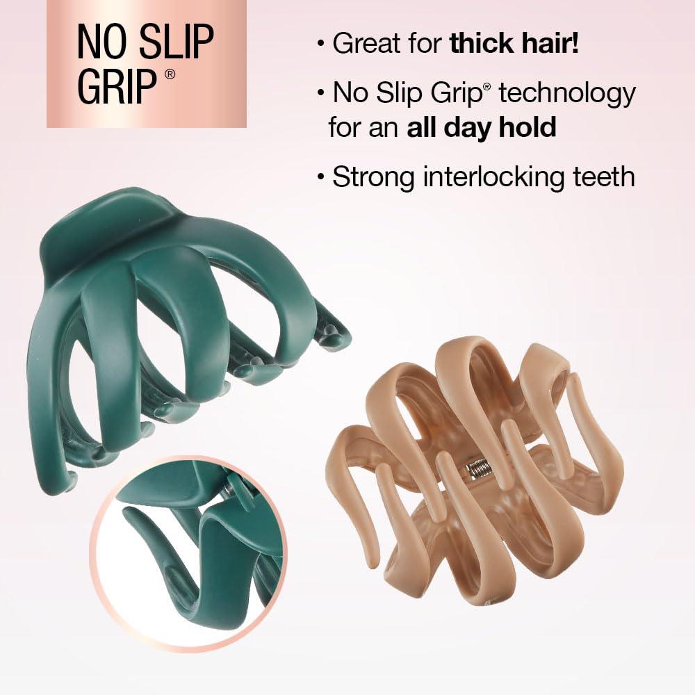 Say goodbye to bad hair days with Scünci No-Slip Grip® Octopus claw hair clips. From the makers of the original scrunchies, these no slip hair clips are your answer for quick, easy-to-do hairstyles. The simply smart design allows you put your hair up effortlessly for distraction-free looks. All you have to do is twist, turn, and tuck, and scünci octopus clips will do the rest. Don’t be fooled by their small size – these 8-pronged clips are strong enough for all-day hold. Simply open the clip and the special interlocking teeth will work their magic, keeping your long thick hair in place for as long as you want. The No-Slip Grip® technology stays put to prevent strays and fallout strands, even on thick curly hair. The unique rounded design fits for more hair than a traditional hair clip, making them just right for long hair or thick hair. And to ensure the prongs stay where they’re supposed to, they’re lined with a special no-slip coating. Strong enough to hold your up-do, but small enough to fit in your purse. Whether you are at work, out for the evening, or just hanging out at home, it’s always a good idea to have a Scünci hair clip on hand. These clever little clips are also just the right tool when it comes to styling, cutting, or coloring hair. Easily section your hair so you can achieve the hairstyle you want—perfect for straightening, curling, or braiding. These useful clips also come in handy for any other beauty routines: keep one by the sink or on the vanity to use while washing your face, while wearing a face mask, or applying makeup. You never know when you’ll need to put your hair up, and with Scünci, you’ll always be ready.
