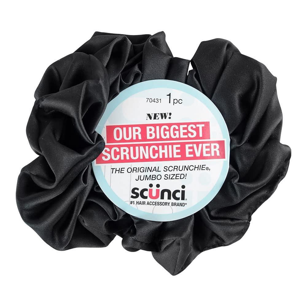 Scunci by Conair The Original Scrunchie hair accessories – hair accessories for women – Jumbo Size in Washable Black Nylon Silk- 1 Count(Black Onyx)