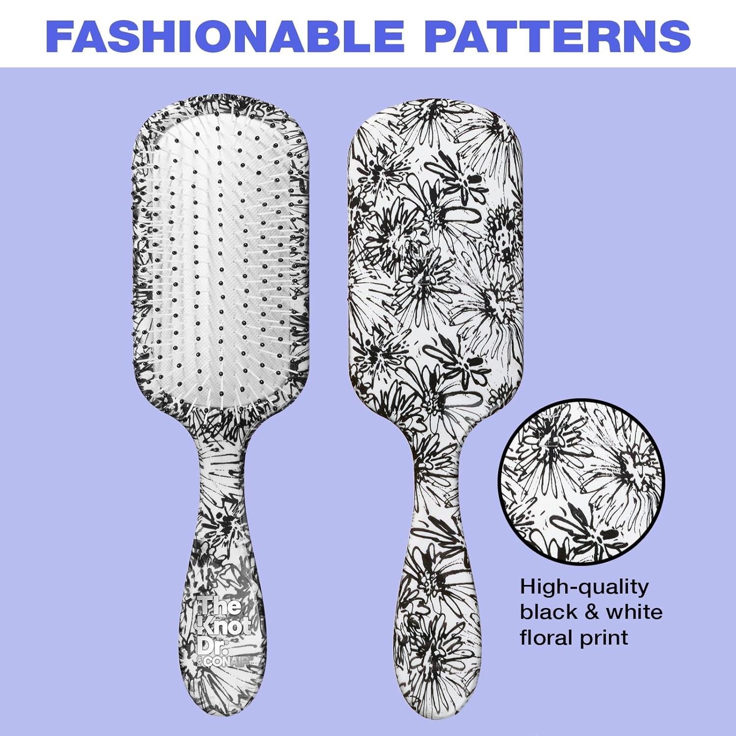 The Knot Dr. hair brush by Conair – Detangling hair brush – Removes Knots and Tangles in wet or dry hair – curly hair brush – Purple(Black/White Floral)