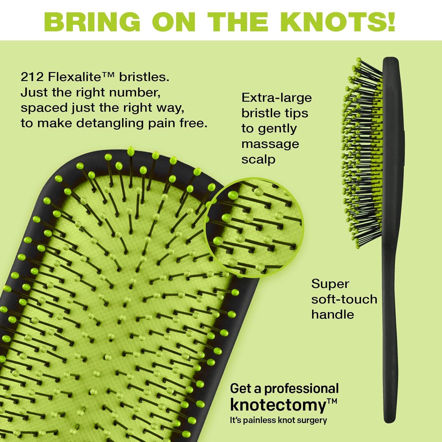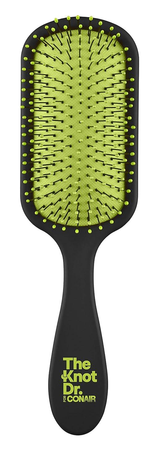 The Knot Dr. for Conair Pro Brite Detangler smoothly glides right through wet or dry hair, eliminating tangles without pulling or tugging. · Optimum Flexalite™ bristle count for painless detangling · Extra-large bristle tips gently massage scalp · Soft-touch finish for comfortable hold · Heat-resistant design – blow-dryer friendly