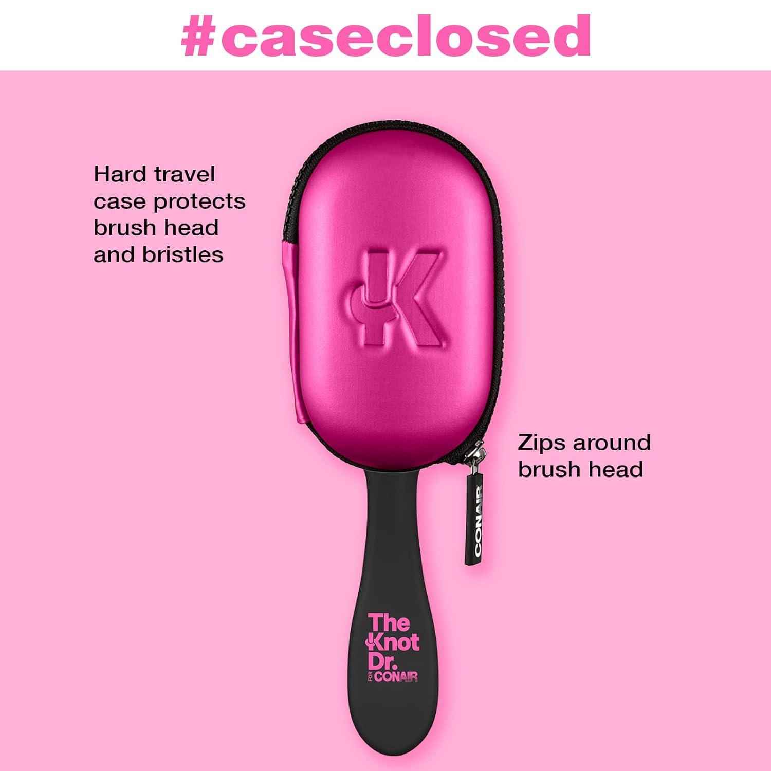 The Knot Dr. for Conair Pro Mini Detangler smoothly glides right through wet or dry hair, eliminating tangles without pulling or tugging. · Optimum Flexalite™ bristle count for painless detangling · Extra-large bristle tips gently massage scalp · Heat-resistant, blow-dryer-friendly design · Hard travel/storage case protects and keeps the bristles clean · The perfect detangler to take on the go