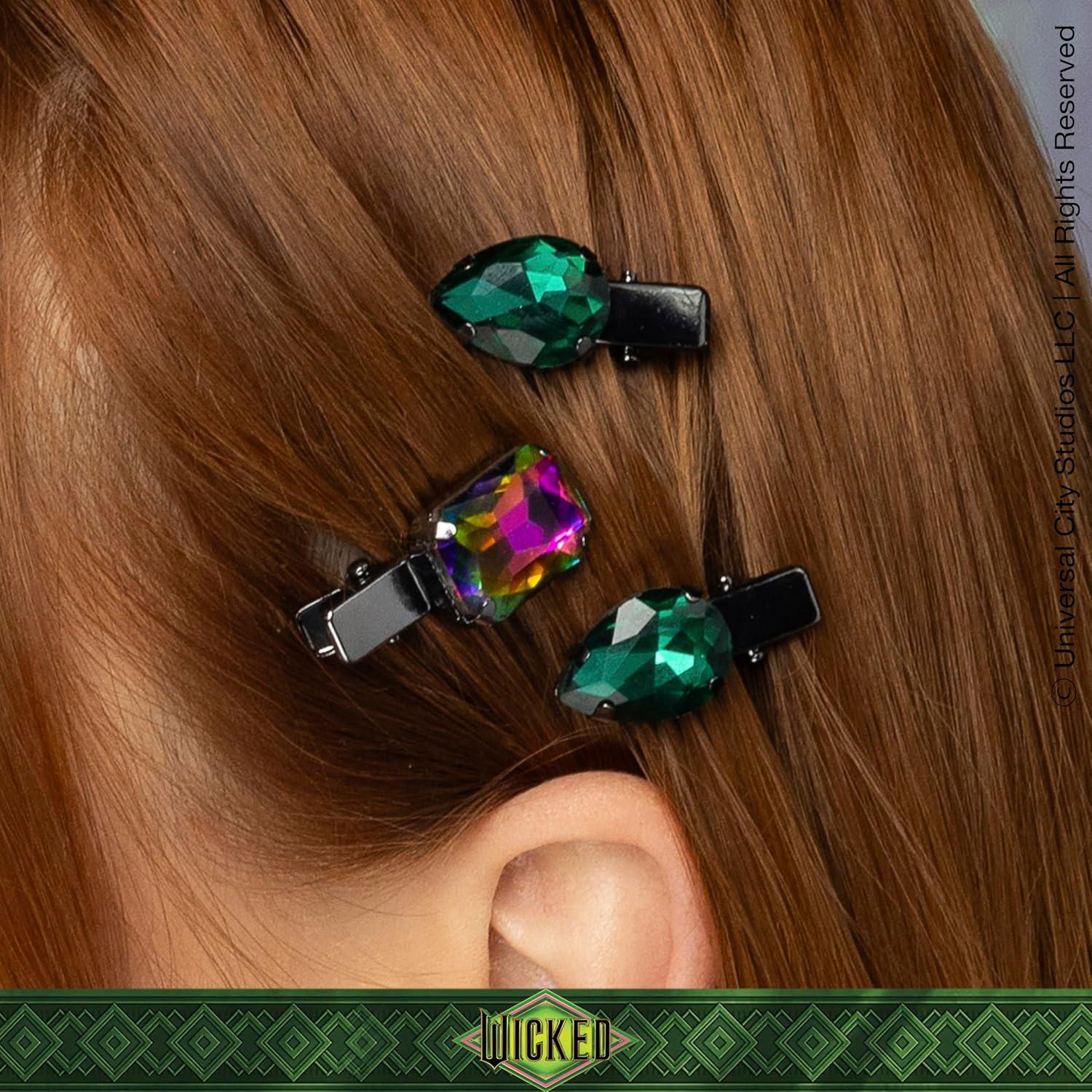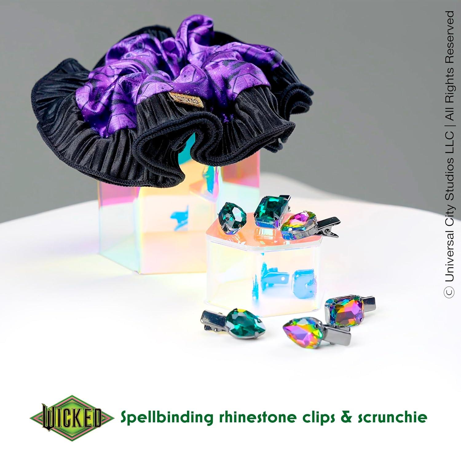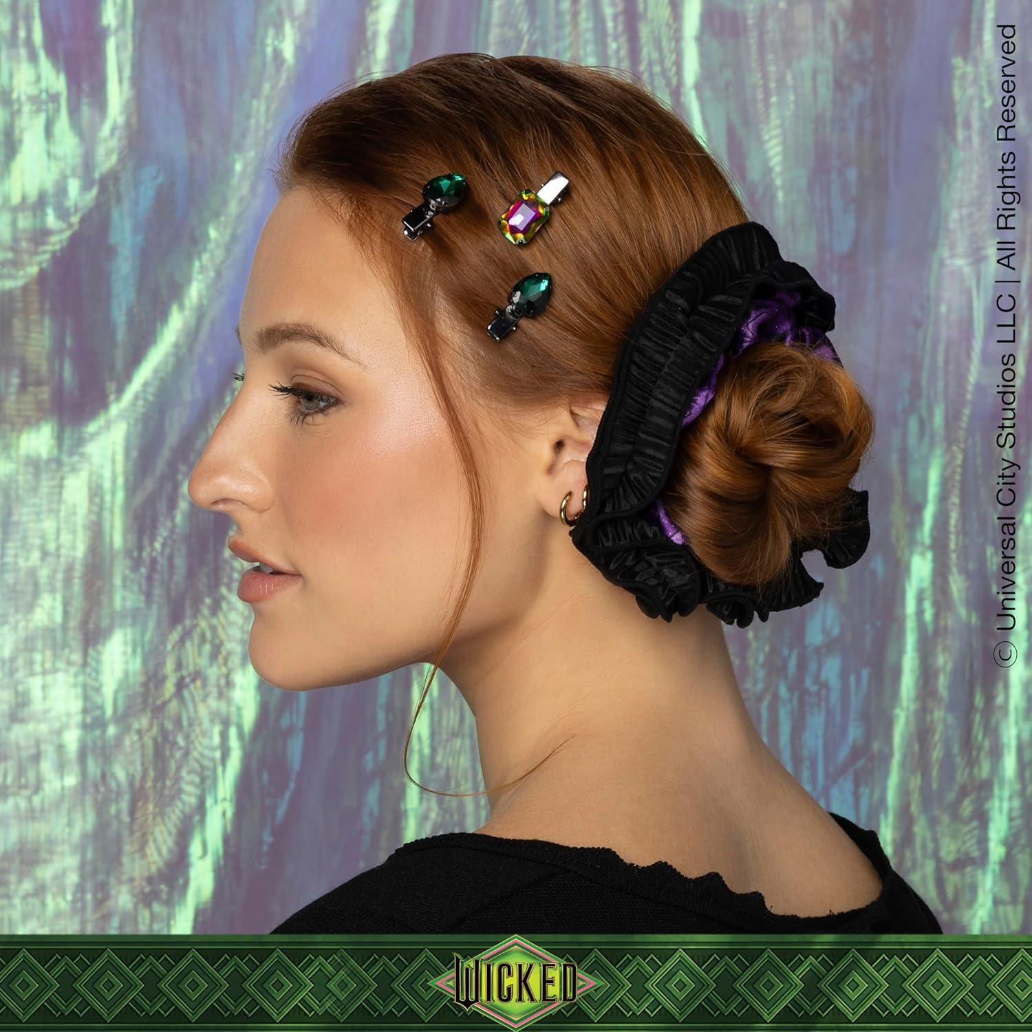 Step up your style with limited-edition WICKED accessories! This Elphaba-themed scrunchie and 5 salon clip gift set offers endless styling possibilities.