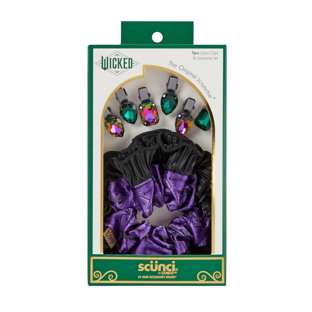Be the first to review “Wicked Elphaba Scrunchie & Hair Clip set – hair clips – hair accessories – hair accessories for girls – gifts for her – Scunci by Conair – 7PK(Elphaba – Black)”